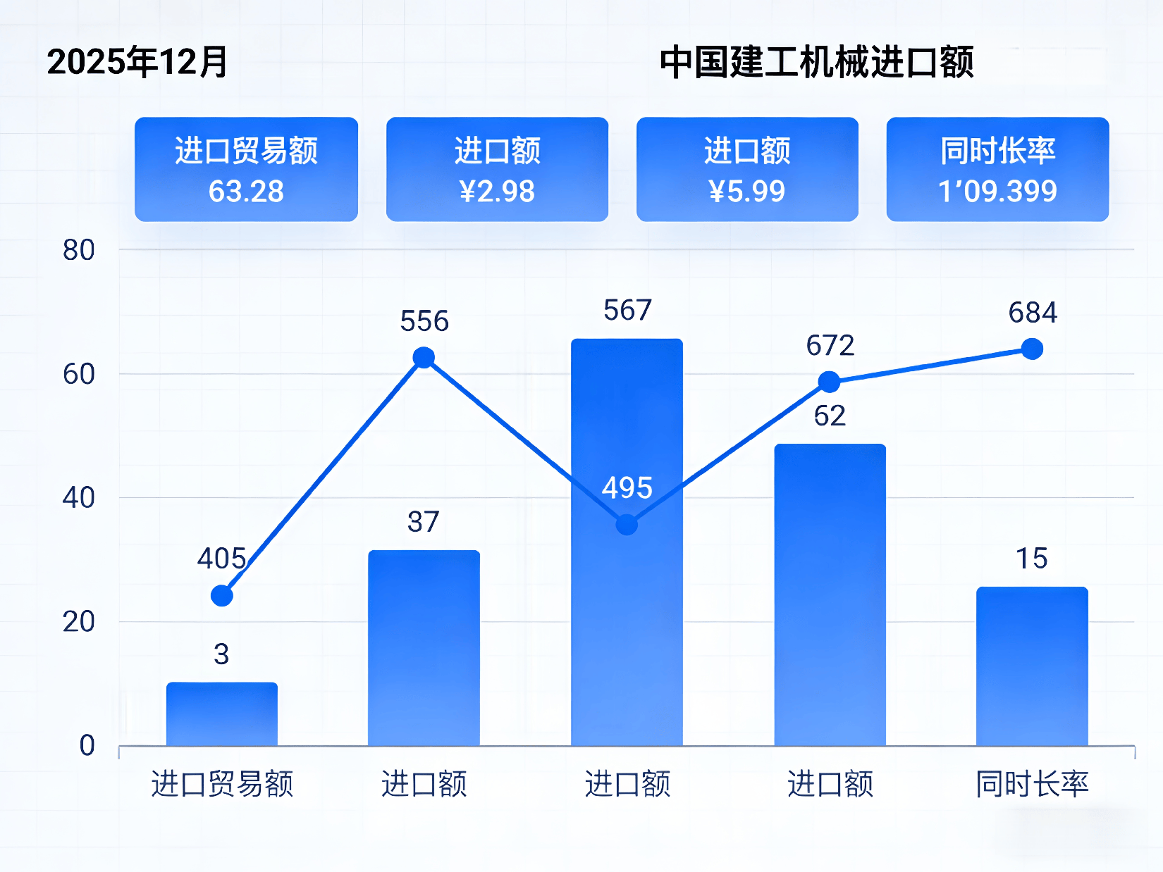 税関データによると、2025年12月の我国の建設機械の輸出入貿易額は54億ドルで、前年比15.4%増加した。うち、輸入額は1億7000万ドルで、前年比11.9%減少し、輸出額は52億3000万ドルで、前年比16.6%増加した。